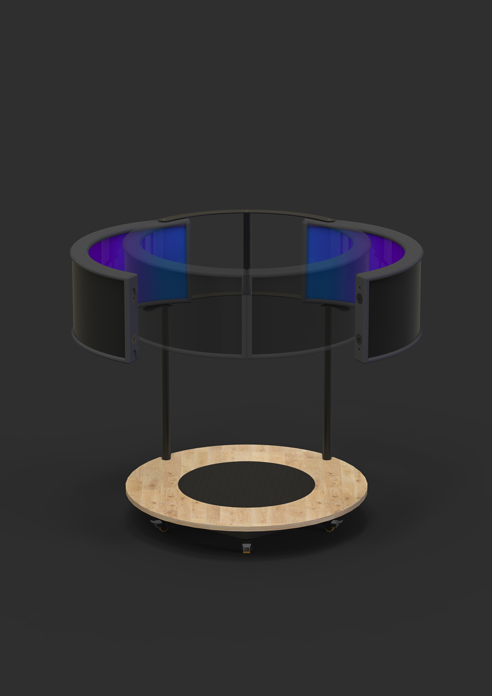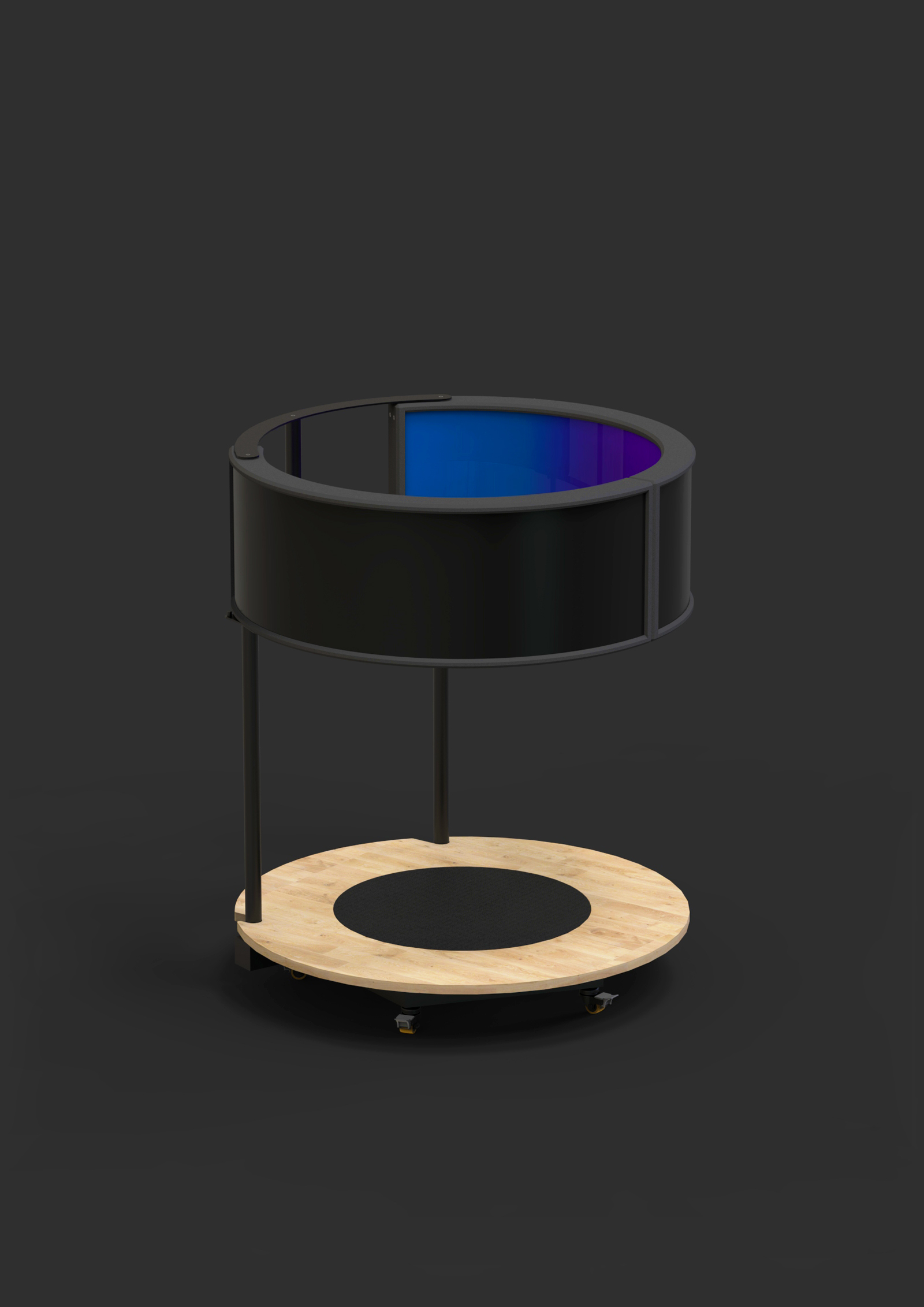 The system takes advantage of physiological parameters do generate various feedback loop. Colours produced by the light ring evolve over the meditation phases, and physiological information from sensors generates additional visual and acoustic feedback. The project is looking for more than just individual well-being : the system is designed to induce a group impact. If light provides personal feedback, sound emitted from the different decks combine their vibration to produce a common and global sound inspired by the tones of meditation bowls. To monitor the impact on participants the system display on the main wall real-time visualisation of the physiological data.